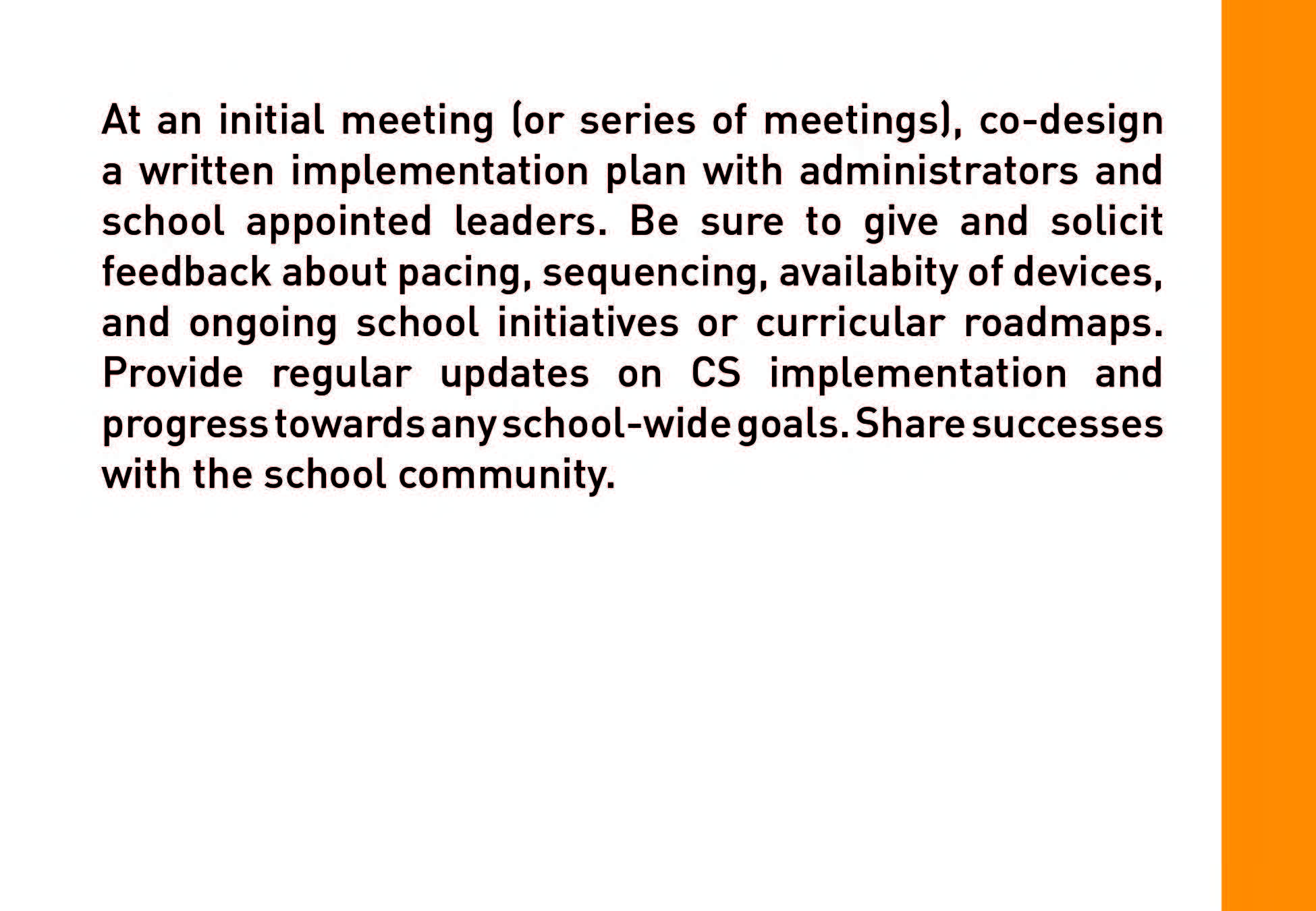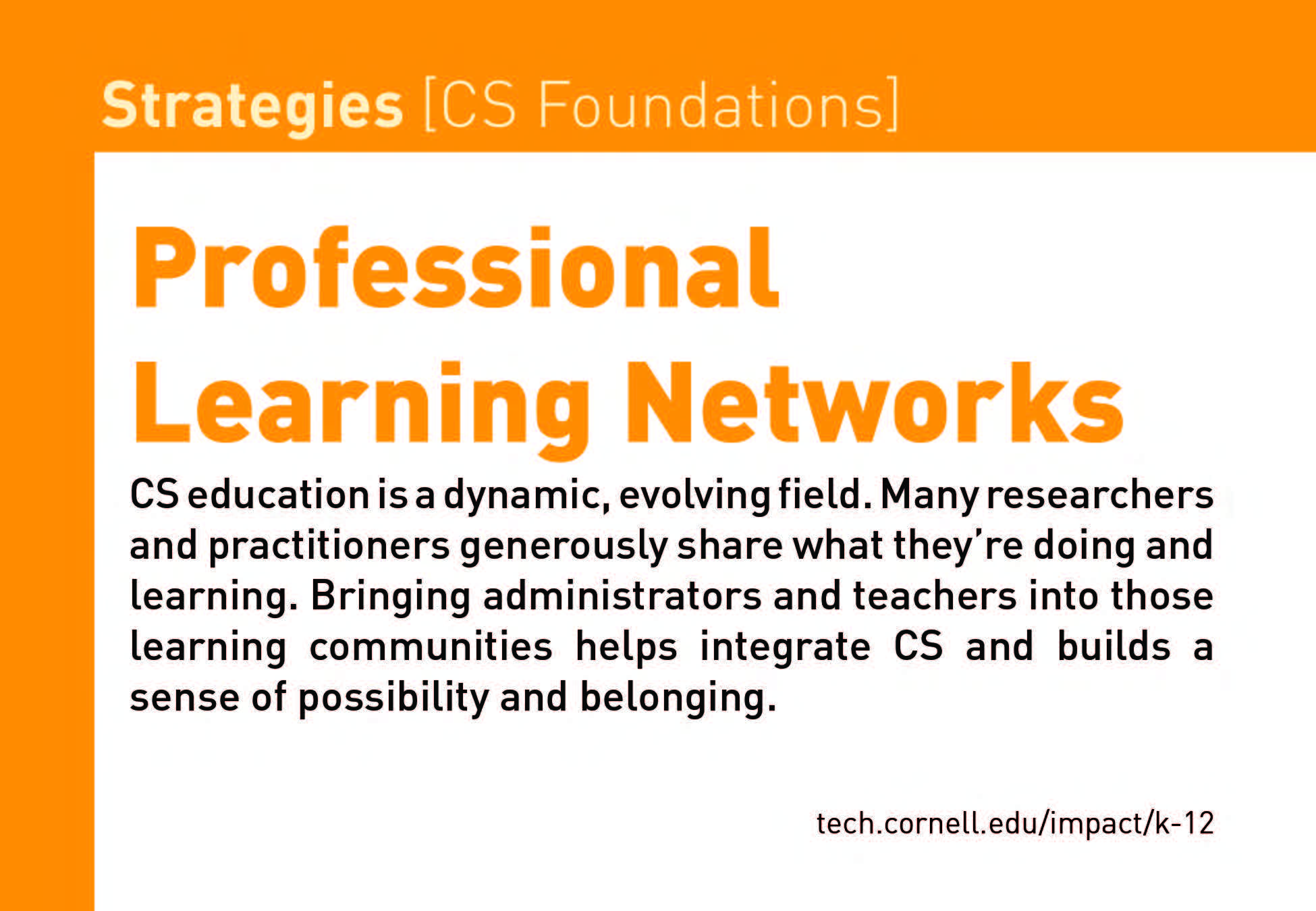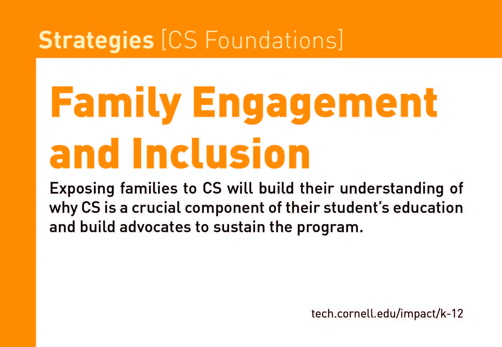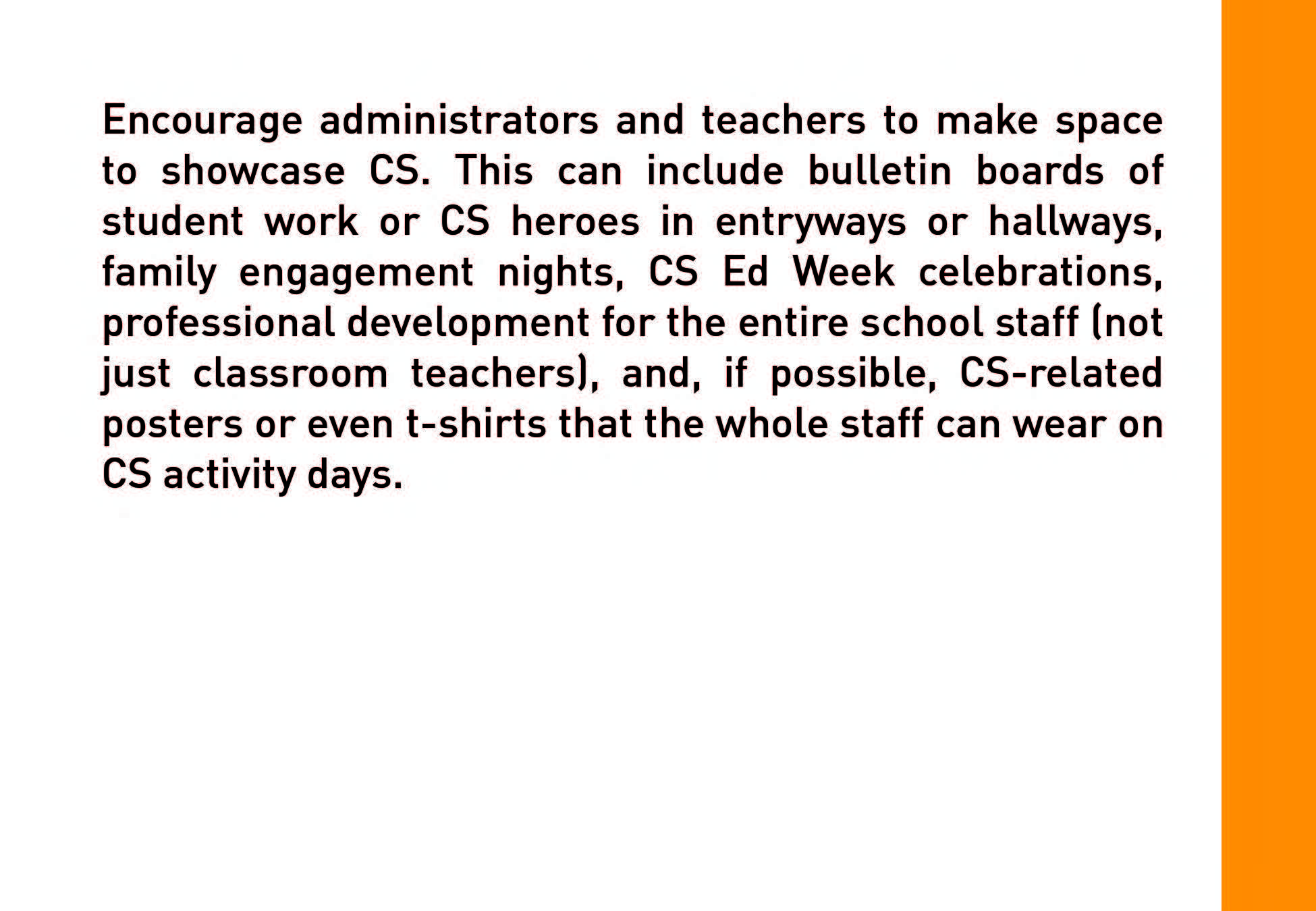 Strategies provides a variety of ideas and options for building an accessible, inclusive and SUSTAINABLE CS initiative.