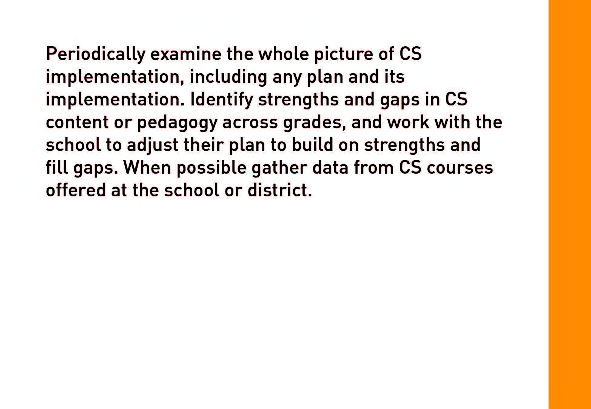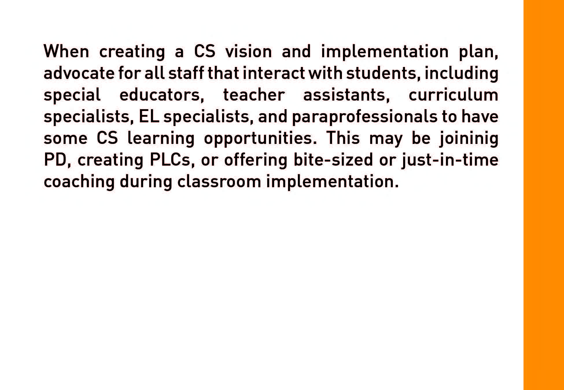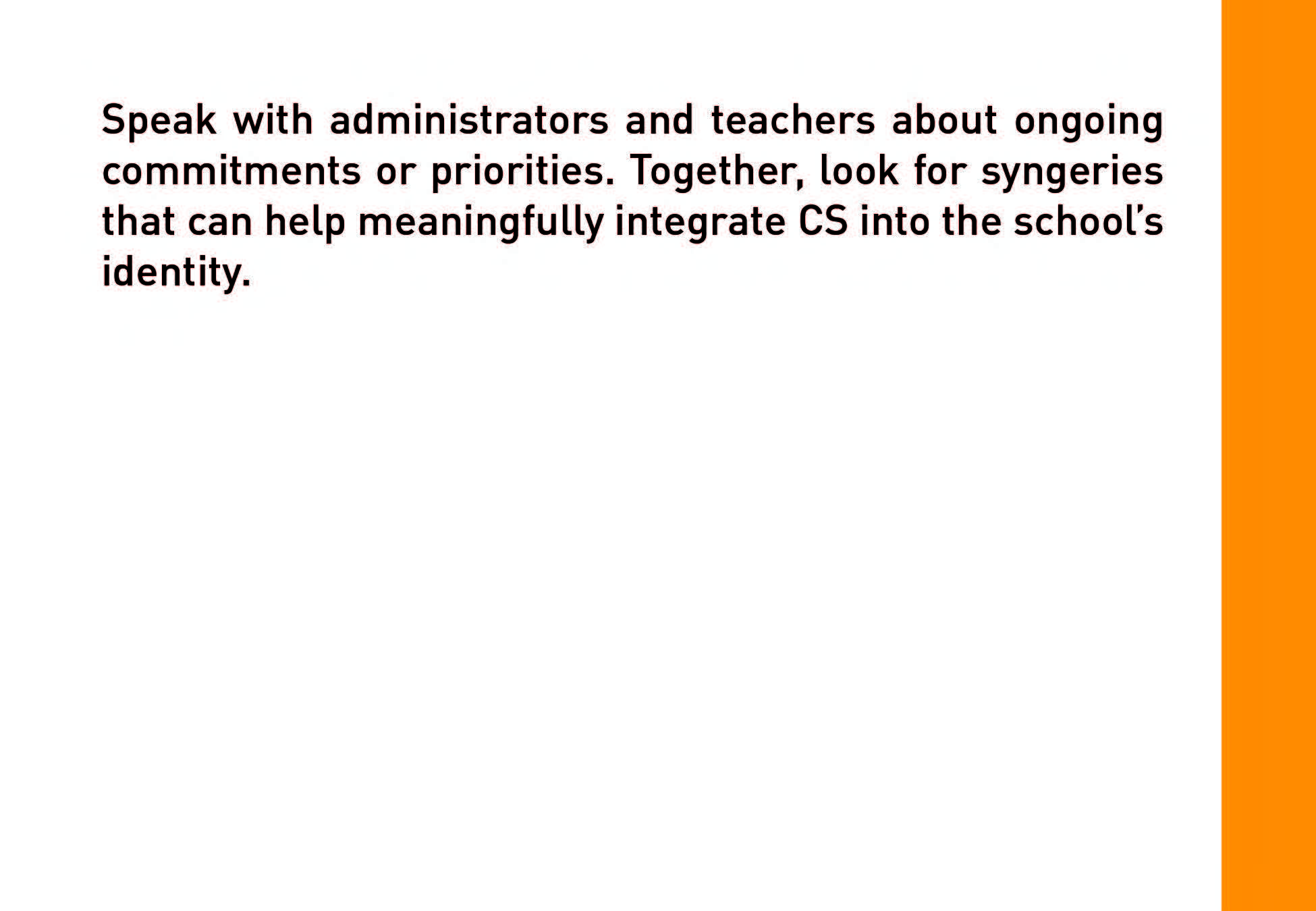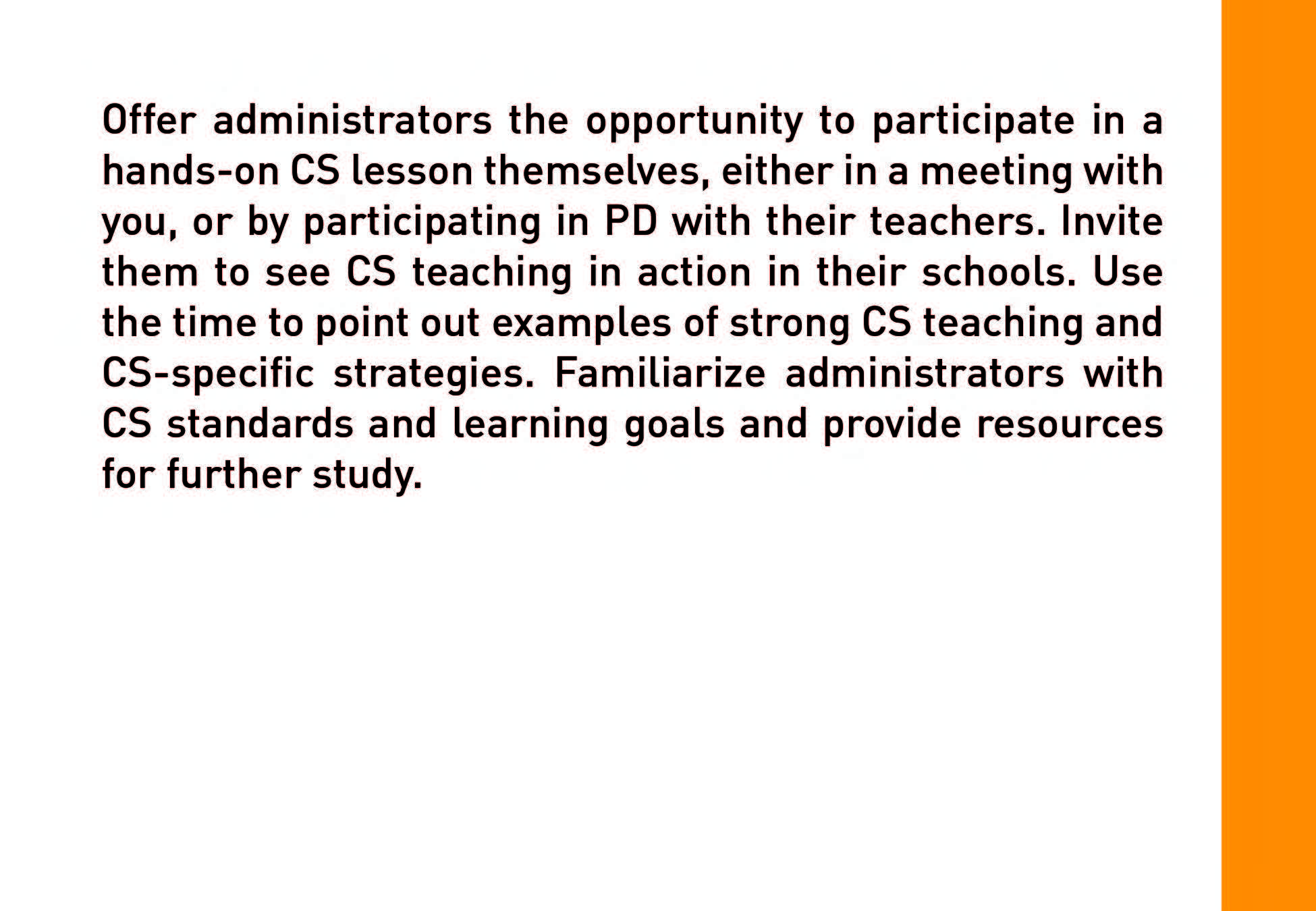 Strategies provides a variety of ideas and options for building an accessible, inclusive and SUSTAINABLE CS initiative.