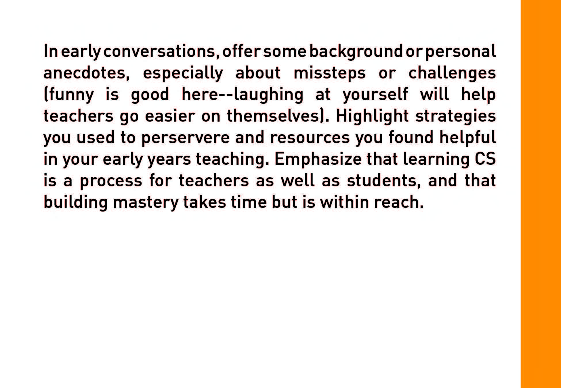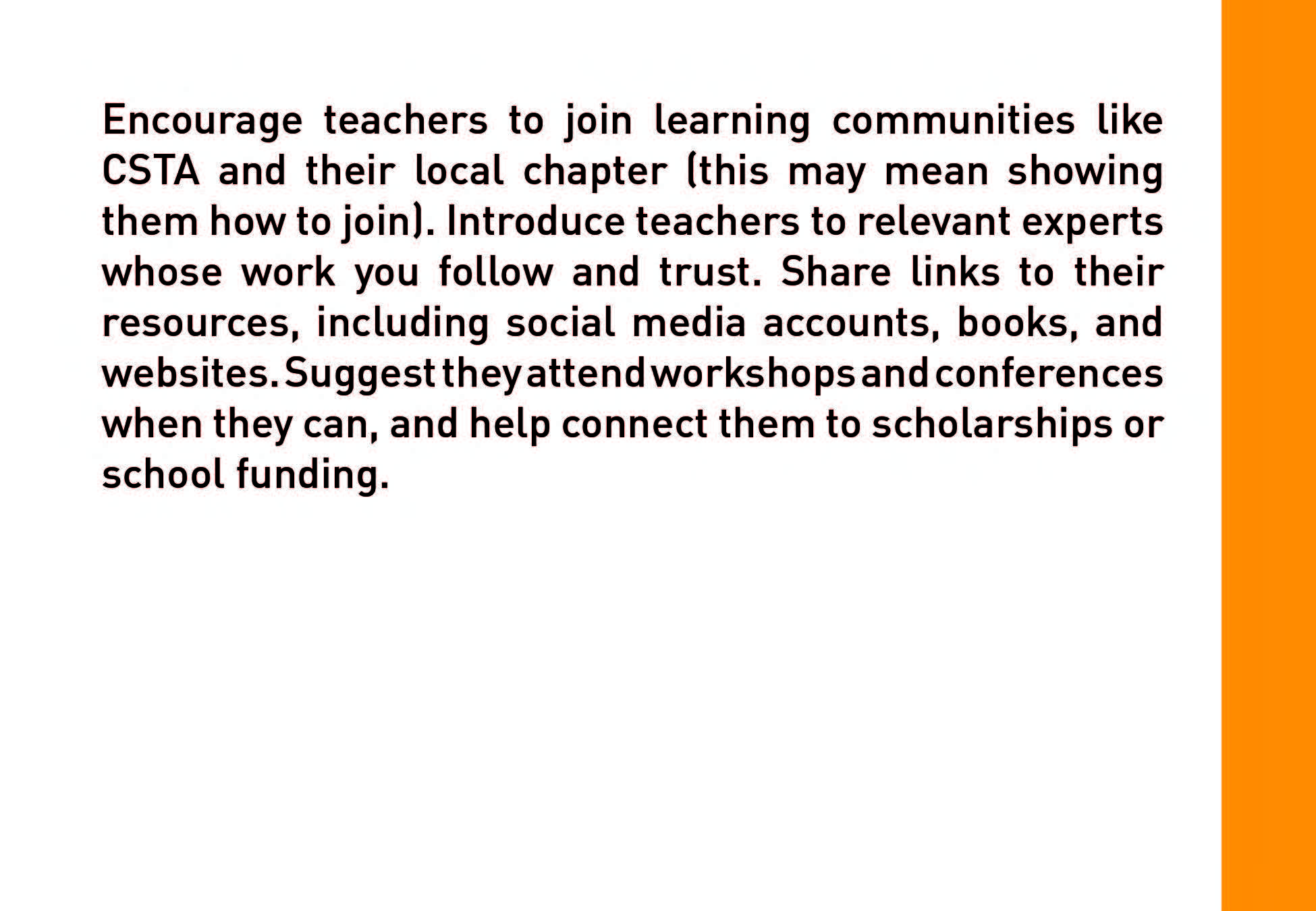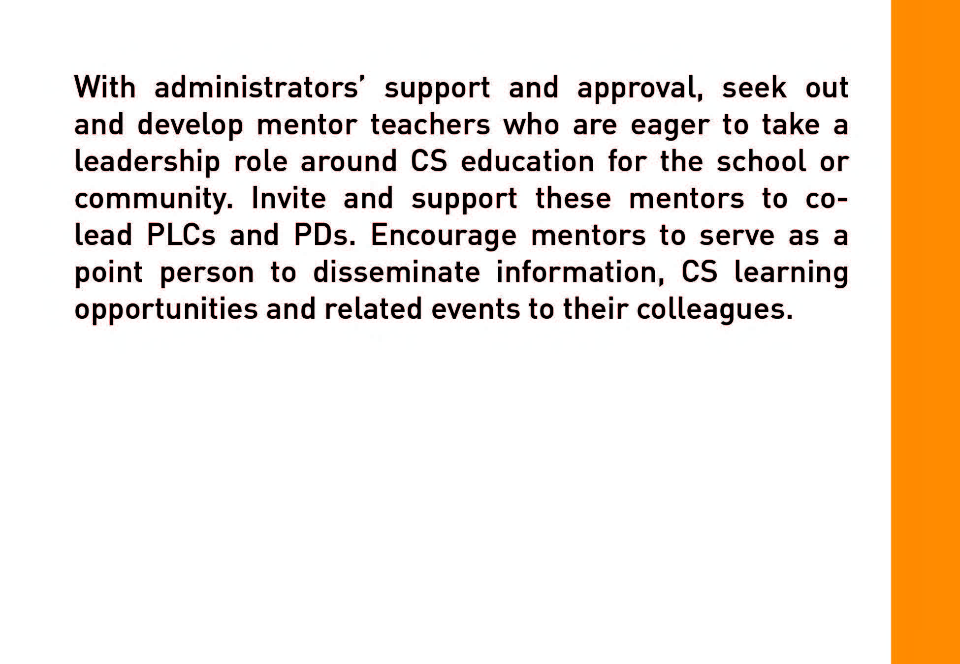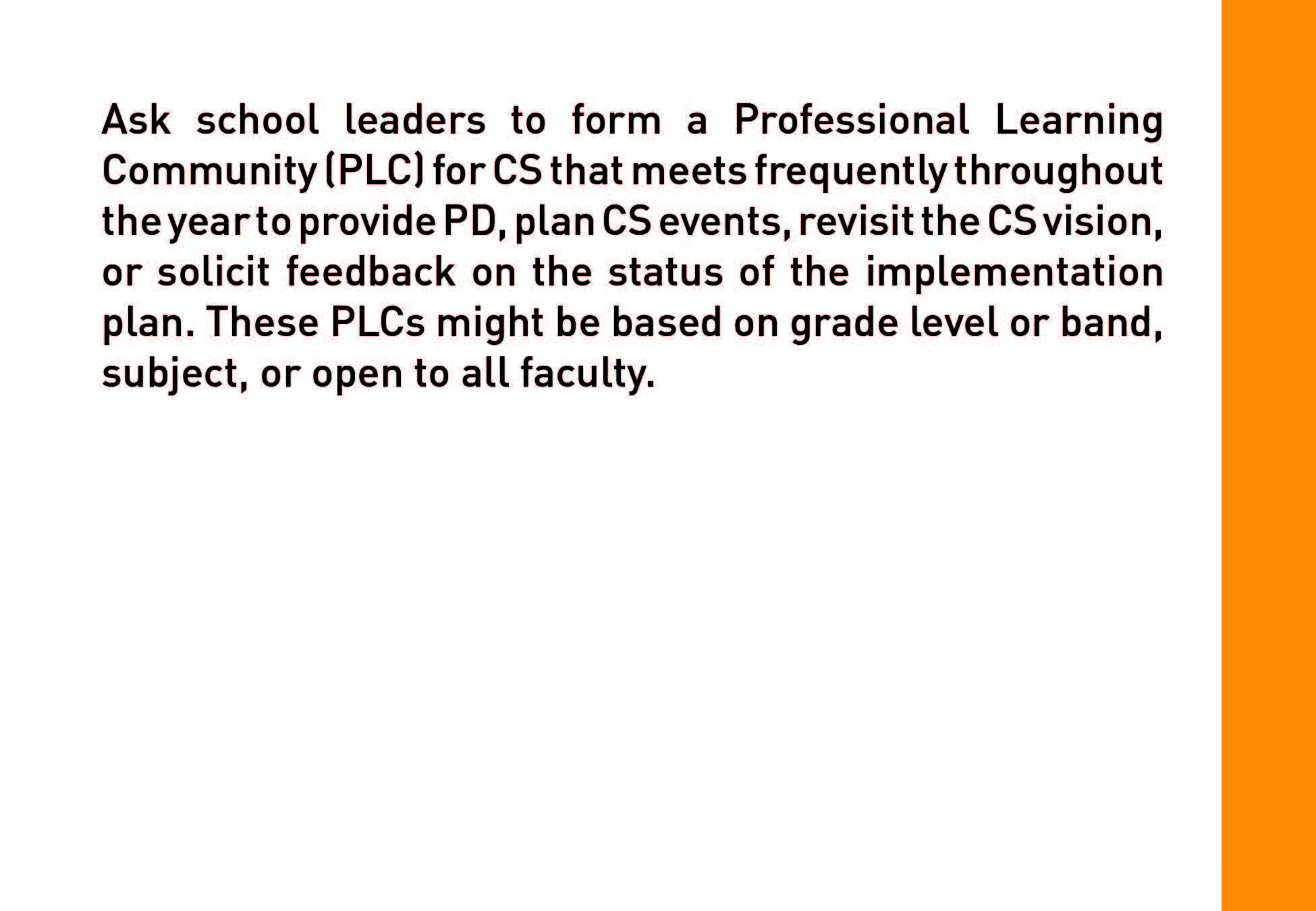 Strategies provides a variety of ideas and options for building an accessible, inclusive and SUSTAINABLE CS initiative.