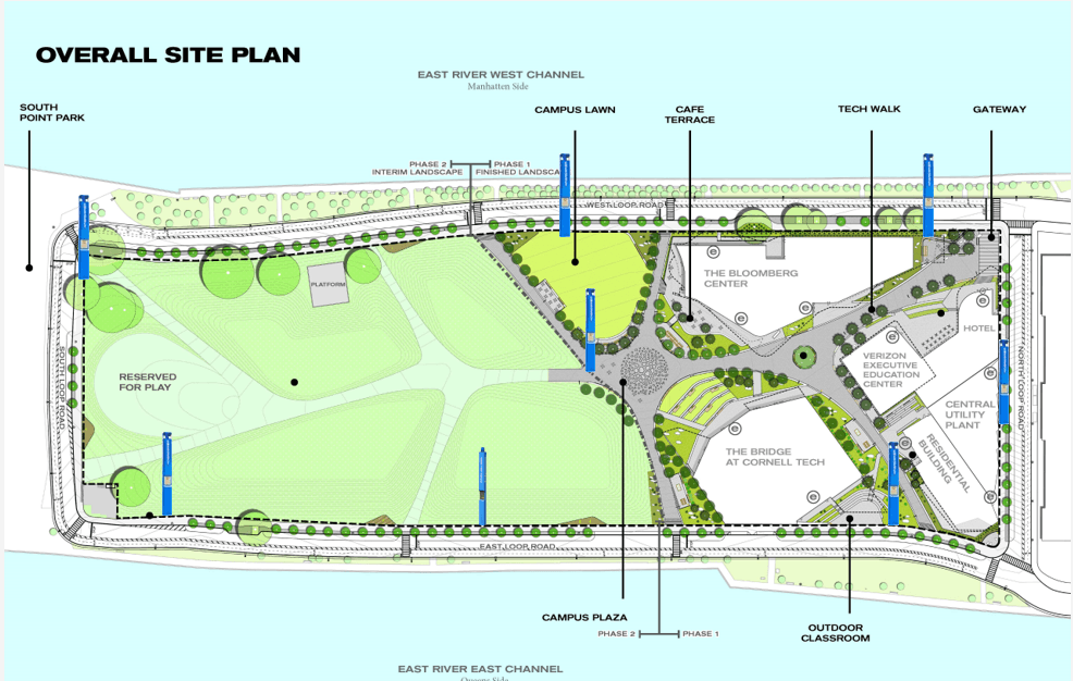 There are currently eight emergency blue light call stations located throughout the Cornell Tech campus. These call stations are strategically placed to provide optimal coverage and are highly visible via the blue light located at the top of each pole. In the event of an emergency or if you require assistance, just depress the call button at any of the poles and this will initiate a direct voice link with the 24-hour Security Dispatch office. Regardless of whether anyone speaks, a security professional will be dispatched to the location. Additionally, the blue light system will be utilized to broadcast emergency messages to the campus community. As the campus continues to grow, we will constantly assess and re-evaluate our blue light program.